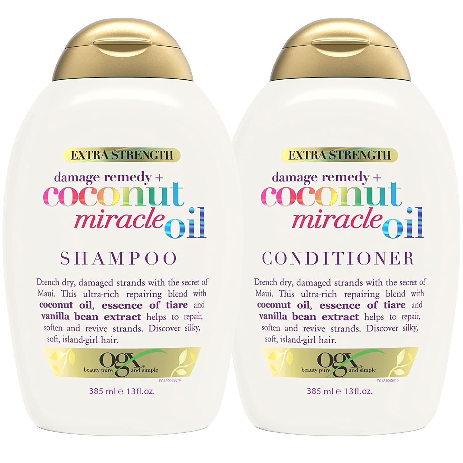 OGX Extra Strength Damage Remedy + Coconut Miracle Oil Shampoo & Conditioner Set, 13 Fl. Oz. (Pack of 2)